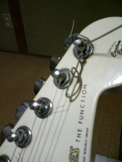 六弦(太い方の弦)から 一弦(細い方の弦)に向かって E(ミ)、A(ラ)、D(レ)、G(ソ)、B(シ)、E(ミ) とチューニング(調律)していくのですが 中には特殊なチューニングとかあって 一弦から六弦すべて半音下げてチューニングするいわゆる 半音下げ また一音(全音)下げる 一音下げ あと六弦のみ一音(全音)下げる ドロップD(通常Eである六弦を一音下げてDにするため) など これらの半音下げ、一音下げ、ドロップDというチューニングは主にハードロック、またはメタルという重低音またボーカルのハイトーンを出す理由などからこれらのチューニングを多用しています。 次に オープンチューニングというチューニングの仕方もあります。 オープンチューニングには種類があって オープンDチューニング オープンGチューニング というのがメジャーですがたまに 上記の二つのチューニングよりも一音高い オープンEチューニング オープンAチューニング なるものも存在します。 このオープンチューニングというのは 開放弦、つまり弦を押さえない状態での各弦の音の構成が オープンDであれば Dのコード(和音)の構成音 オープンGであれば Gのコード(和音)の構成音 で構成されているというチューニング方法です。 このオープンチューニングはフォークギターで一人でベース音、メロディー、またはコードを演奏する際に使われたりします。 あとこのオープンチューニング ボトルネックと呼ばれるまさに瓶の首の部分に似せた器具を指にはめて演奏するボトルネック奏法 という奏法でギターを弾く際にも使われます。 で 最近ボトルネックを使用するオープンDの曲を一曲弾けるようになったので オープンDチューニングにしたりまた通常のノーマルチューニングしてみたりといろいろギターを弾いていたのですが‥‥ 何回かオープンチューニングからノーマルチューニングにチューニングし直していて弦に負荷がかかりすぎたのかギターの一弦が 切れました‥‥ あいにく家の近くにはギターの弦をおいているお店などなく‥‥‥ 少し遠くに足を延ばせば楽器やさんではないけれど弦を置いているお店もあるのですが この街は 19時を過ぎるとどこも閉店してしまう という健全ぶり なので買いに行けず。 結局 ギターの一弦の切れ端をこの前弦交換した際に長すぎて余った弦とを結んで?!応急処置を施しました。 幸い弦の切れた箇所が演奏には支障のない箇所だったので‥‥‥ なんとか音は出るようです。 PR