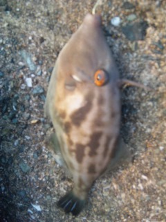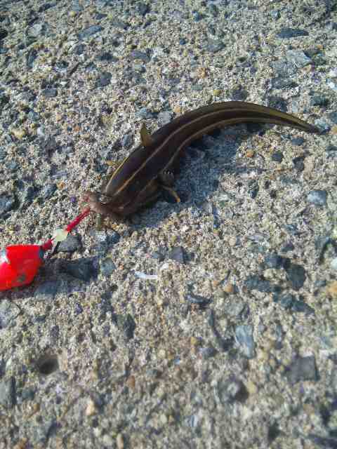 鐘崎漁港へ行ってきました 狙いはテトラポットの下にいるといわれるアラカブ テトラポットの隙間からアラカブ用の仕掛けを落としこむこと約一時間… アラカブはいないようですが他の魚はいるみたい…… エサばかりとられます; アラカブは口の大きな魚なので針が大きくほかの魚は引っ掛からないようです 一緒にいった同僚もアラカブはいないと判断したようで車にアラカブとは違う仕掛けをとりにいってしまいました そのとき ん?! なんか釣れた(^O^)/ 小さいですがハゼのような縦にラインの入った魚 まあ小さいのですぐに海に帰すのですが一応記念撮影 車に仕掛けを取りに行った同僚に 「釣れましたよ~小さいのでリリースするけど…」 と写メールを送ると すぐ電話がかかってきました 「つとむ☆さん大丈夫ですか?!」 「ん?なにが?」 「その魚はゴンズイです。猛毒があります。刺されてないですか?!」 厚手のタオルで包んで針を外してリリースしたので刺されはしなかったのですが あとで聞くと刺されると手が物凄く腫れるとのこと…… ゴンズイ、ヒゲがあって愛嬌がある顔をしていたのですが毒があるとは…… 刺されなくてよかったです んで仕掛けも変えて場所を移動したところ かなり釣れましたo(^-^)o カワハギ、イサキ 小さいのですべてリリースしましたが…… 今回の釣りは釣れたのですごく楽しかったですね 鐘崎漁港、いいところです(^O^)/ |
